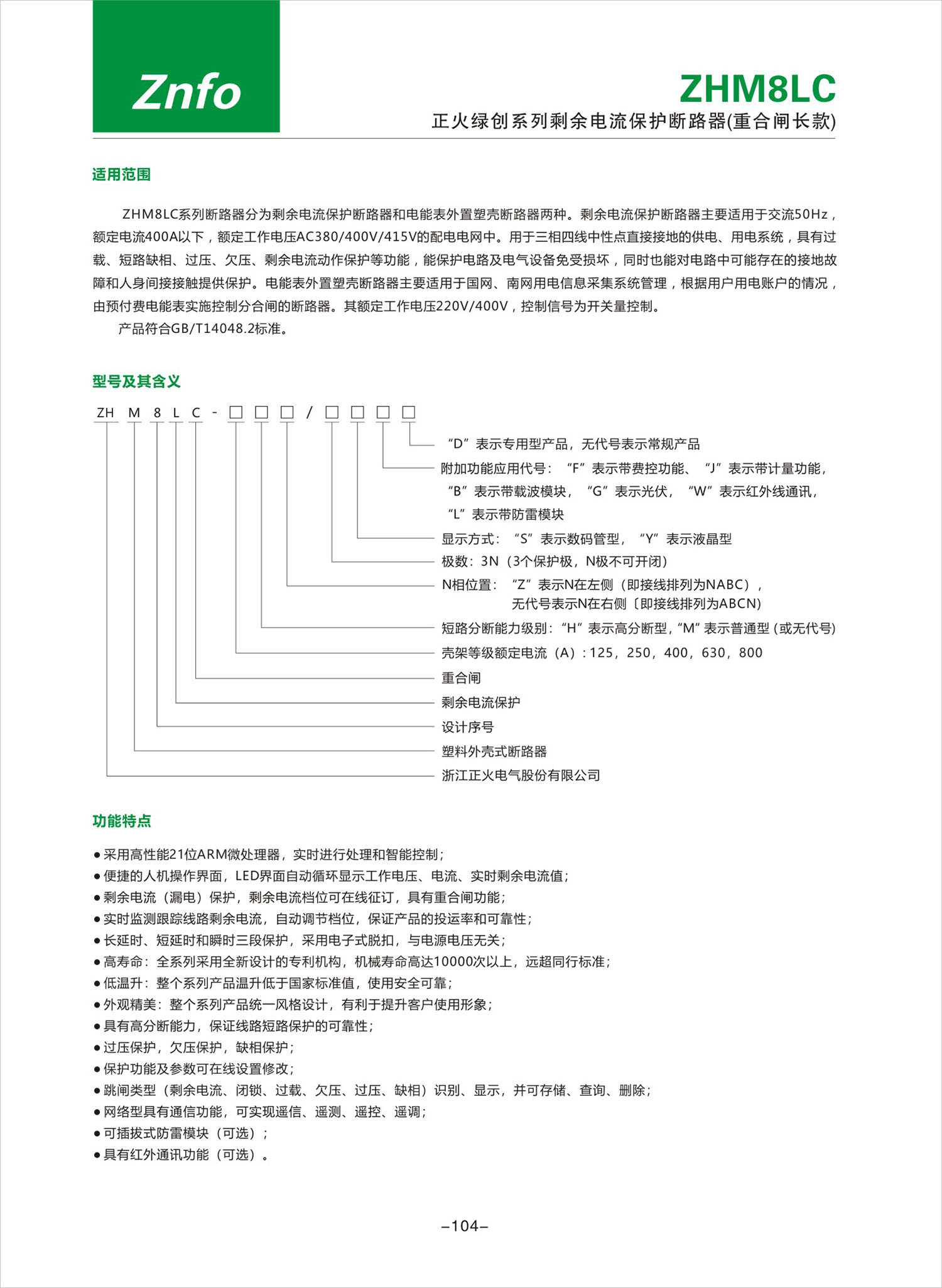 ZHM8LC系列剩余電流保護(hù)斷路器(重合閘長款)產(chǎn)品說明書
